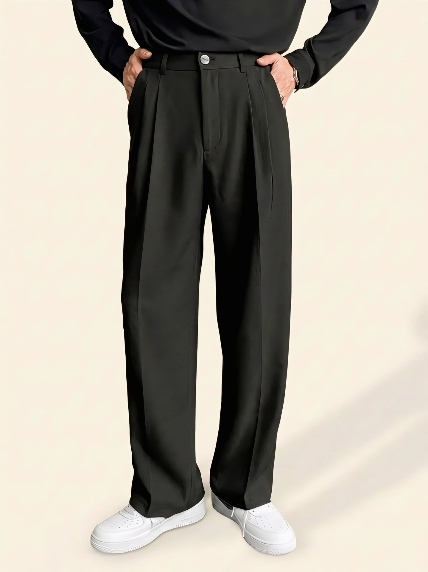 For a true Korean Streetwear look, pair these trousers with a tucked-in oversized tee and chunky white sneakers. To transition to a Smart-Casual vibe, swap the sneakers for loafers and add a structured blazer.